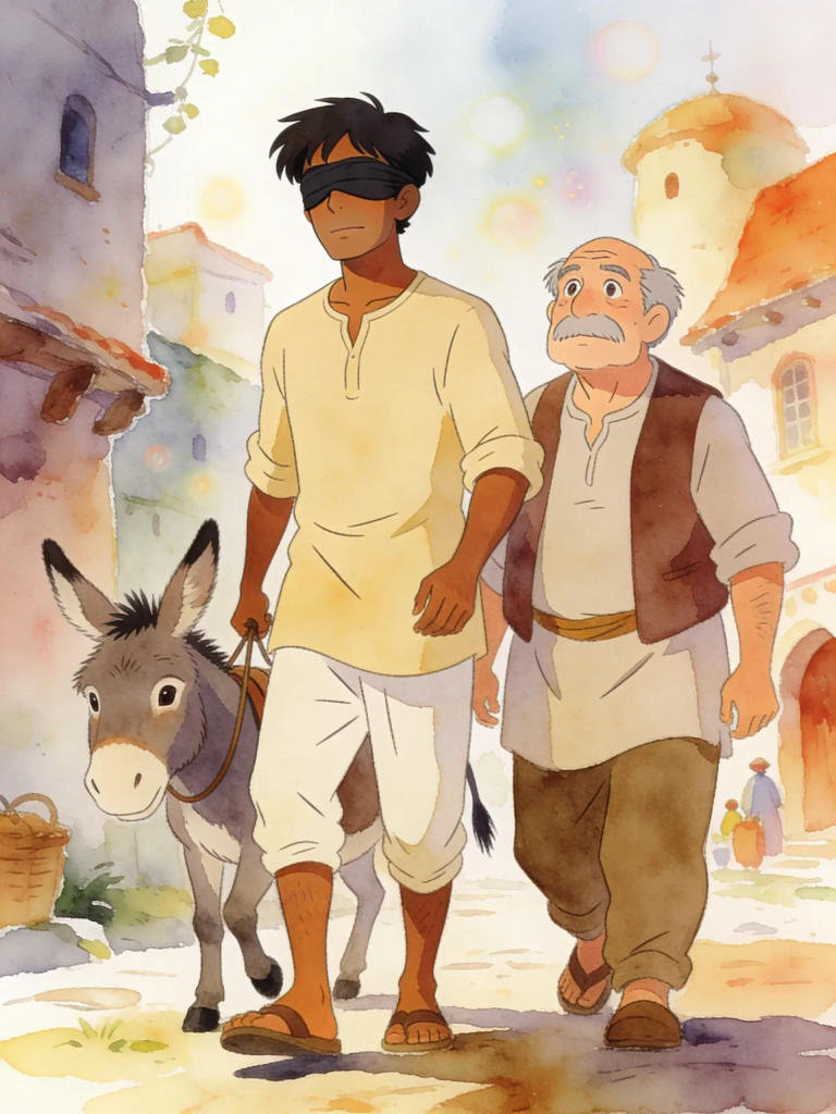 - The three sharpers return, re-examine the ass, and then declare it is not the one they wanted, claiming it has a blemish and is worthless to them.