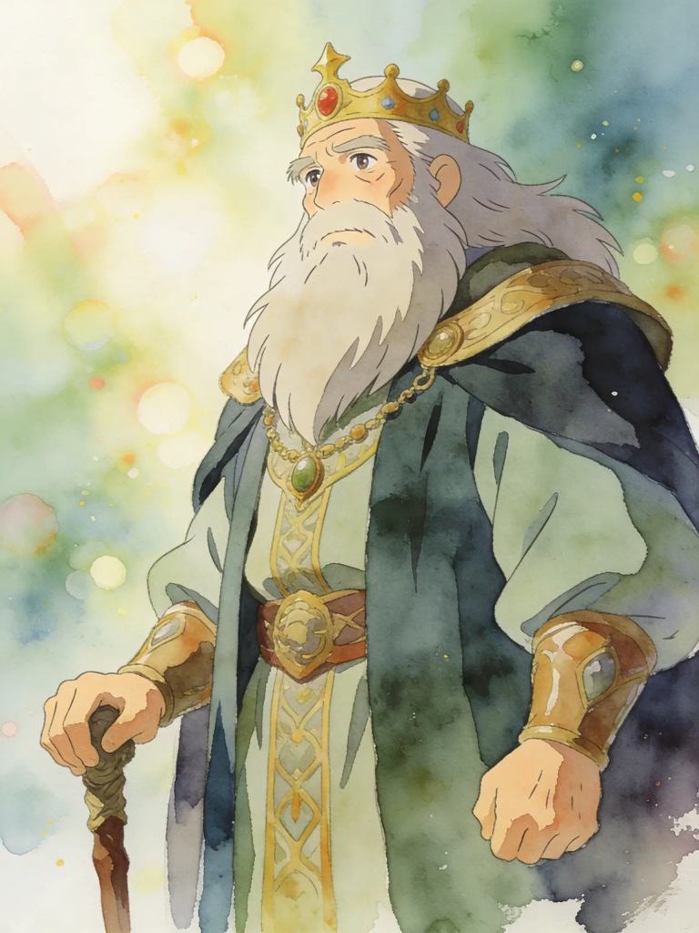 Regal and imposing, even as a spirit. He carries the weight of his past rule and battles.