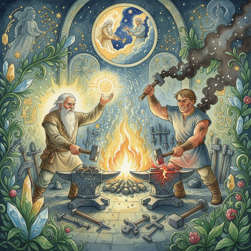 The Loihtija (sorcerer) conducts the first three tests for the fathers to identify their sons, transforming them into identical animals.