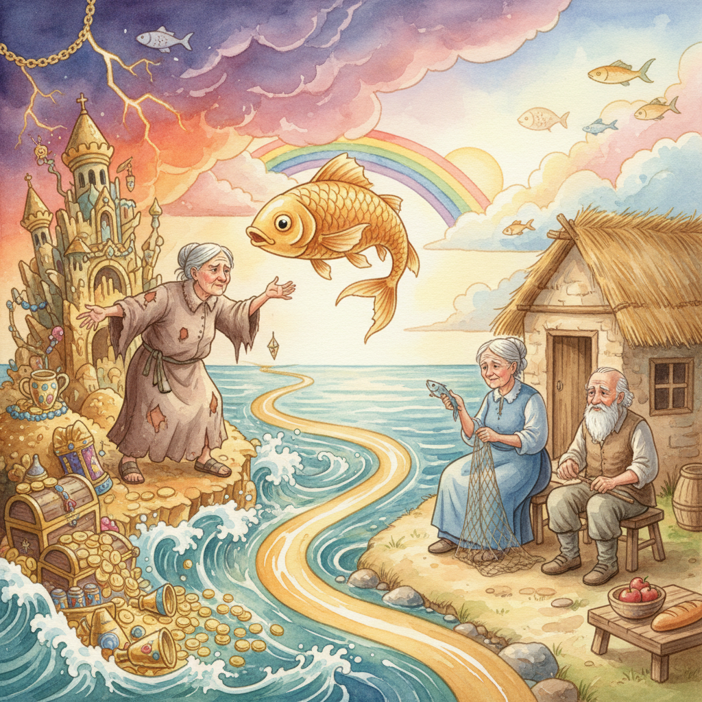 - He finally finds a beautiful nut branch with golden nuts in a dark forest, but a fierce bear appears, threatening to eat him.